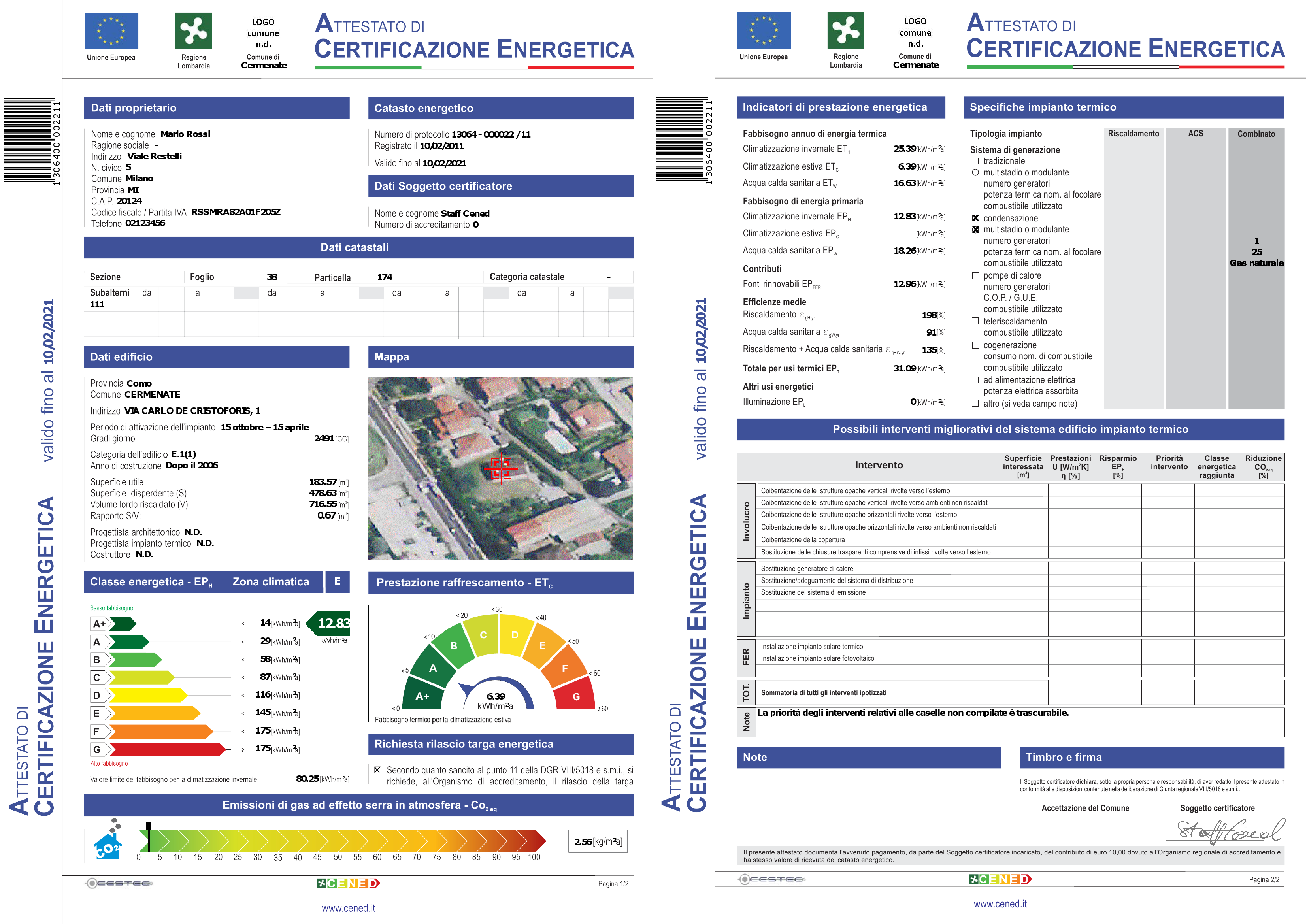 Il proprietario, che non sia in possesso dell’attestato, ne può richiedere una copia utilizzabile ai sensi della normativa vigente rivolgendosi al solo certificatore, che ha redatto l’attestato, il quale può accedere alla sua area riservata del sito cened, stampare l’attestato depositato nel Catasto Energetico e firmarlo in originale. Se il professionista ha dato il proprio consenso alla pubblicazione dei dati personali ai sensi dell'art. 13 del D. Lgs. nr. 196/2003, il proprietario può trovare i recapiti del certificatore tramite il servizio Trova il certificatore che permette la ricerca per nominativo.