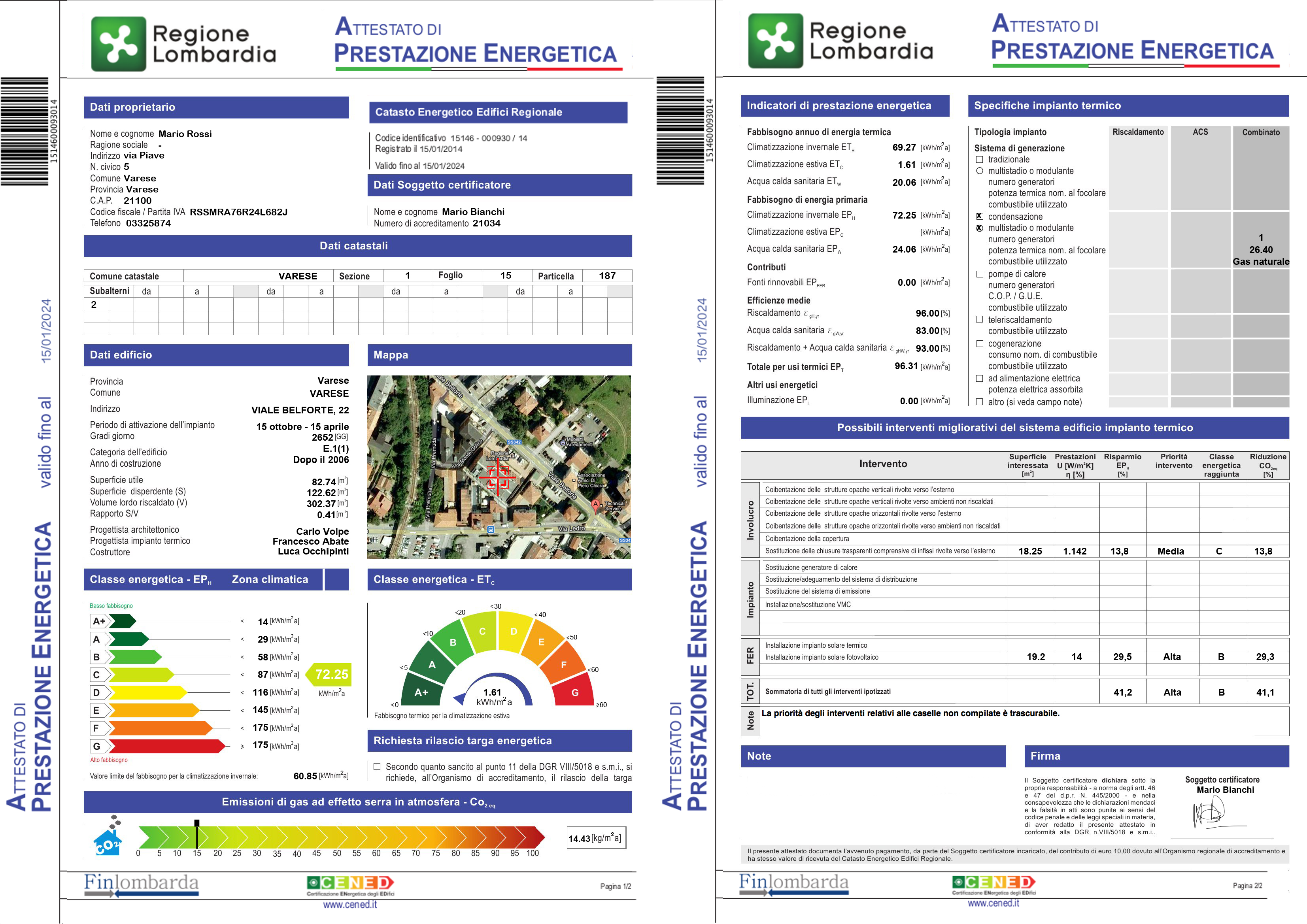 Modello di APE in base alla DGR X/1216 del 10 gennaio 2014